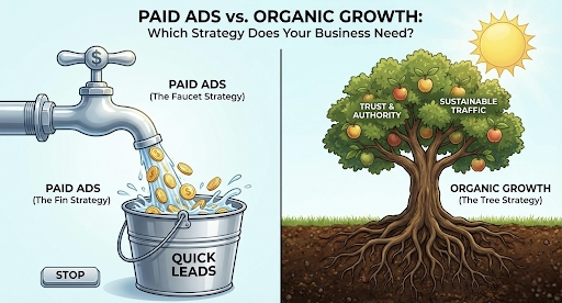 The smartest businesses don’t choose. They use Paid Ads to get initial traction while their Organic strategy builds up in the background. This maximizes immediate cash flow while securing long-term stability.